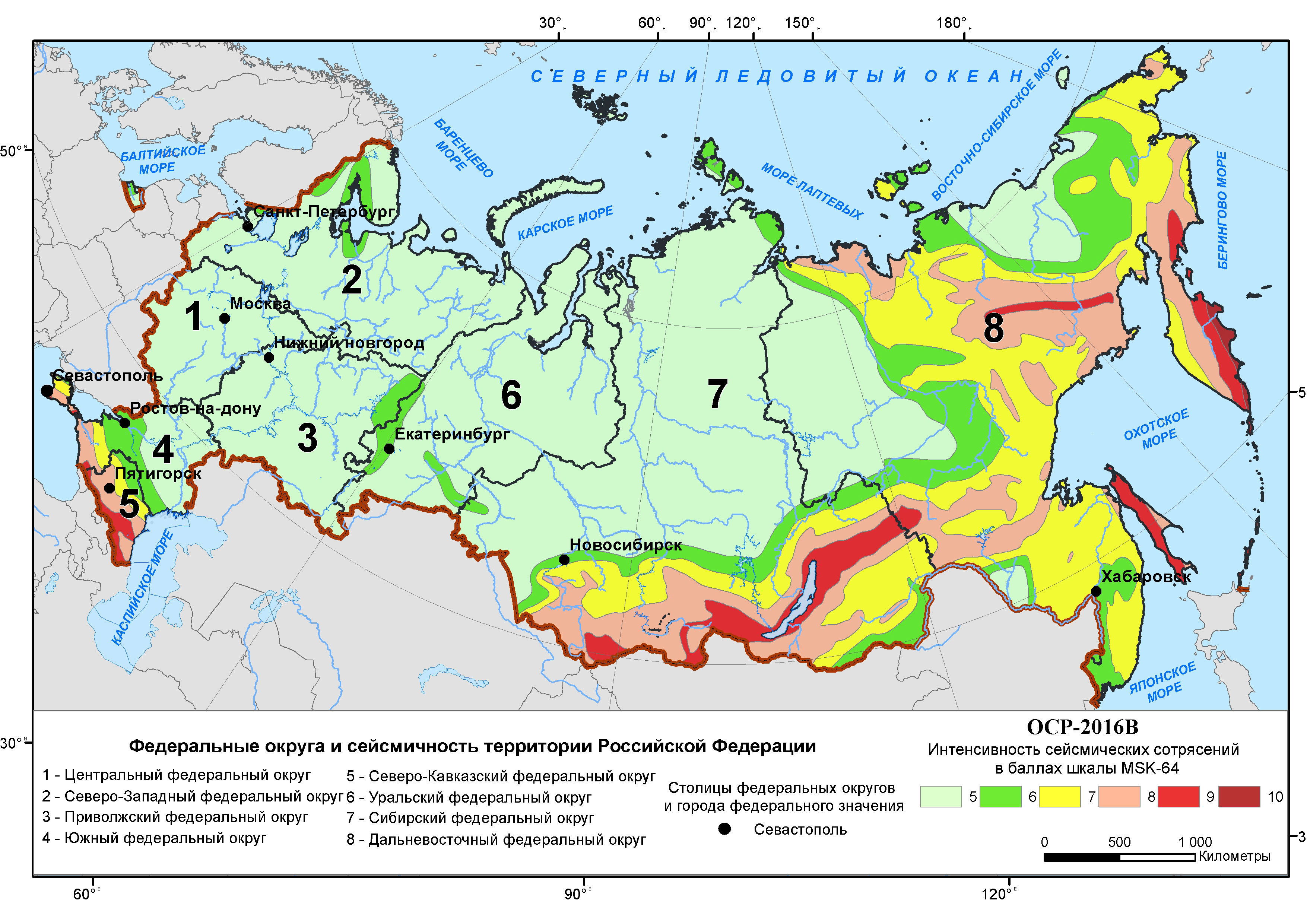 Карта сейсмичности территории России показывает, где в России могут происходить землетрясения.
